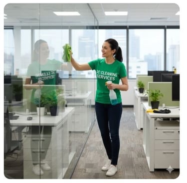 We provide regular office cleaning including dusting, hoovering, sanitising high-touch areas, bin emptying, and kitchen/bathroom refresh. Flexible scheduling ensures minimal disruption and a consistently clean environment for staff and visitors.